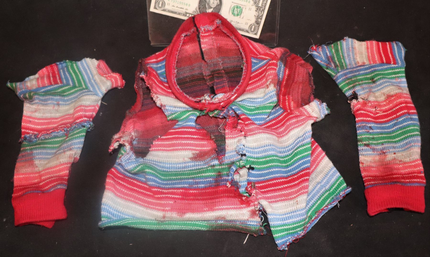 AS PROVENANCE, I will take a photo of this sweater with the complete Chopped Up CHUCKY!