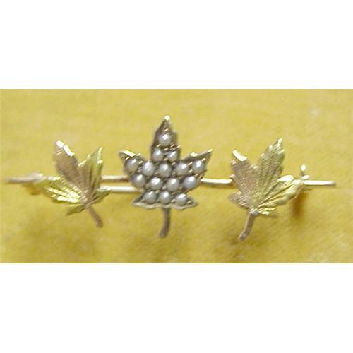 Lovely 10k gold, Victorian detailed barpin style brooch, featuring what it seems 3 detailed Maple Leafs, with the center leaf all encrusted with 15 tiny seed pearls, - LOVELY, Excellent condition. Brooch measures about about 1" 1/2" long , US Buyer please pay 6.00 for shipping plus insurance, We prefer Paypal payments, Thanks for looking!