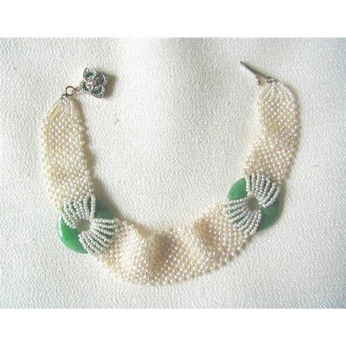 <tr><td>Title:SEED PEARL & JADE BRACELET/EMERALD CLASP</td></tr>