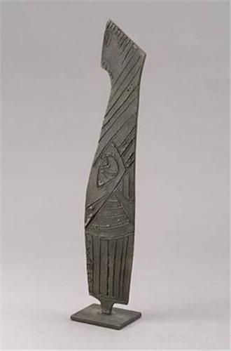 Weibliche Figur,<BR> Bronze. Flache, stark abstrahierte Frau im Profil. H.: 26 cm. Bez.: Künstlersign. S. WEIDL. <BR>