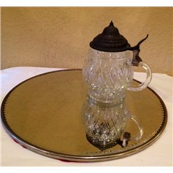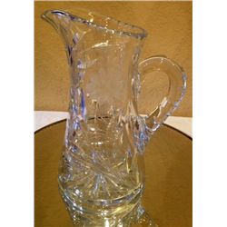 Beautiful carve crystal pitcher with floral design. No chips or cracks. 7"W x 9.5"H
