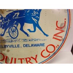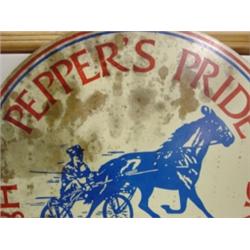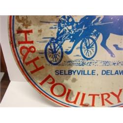 Pepper's Pride, H & H Poultry Co., Inc., Selbyville, Delaware circular tin advertising sign. Shows signs of staining. 24" Dia.