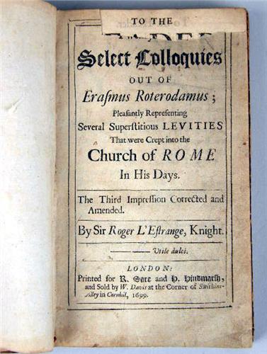 SELECT COLLOQUIES OUT OF ERASMUS ROTTERDAMUS, BY SIR ROGER L`ESTRANGE