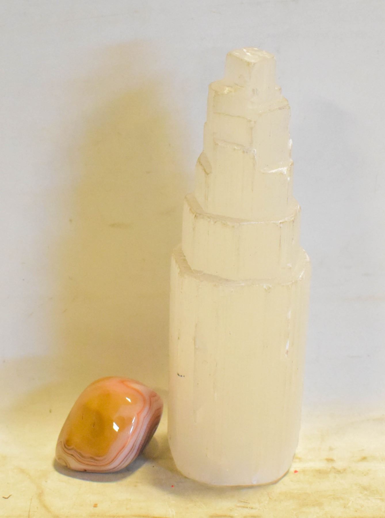 SELENITE TOWER & BANDED AGATE (POLISHED)