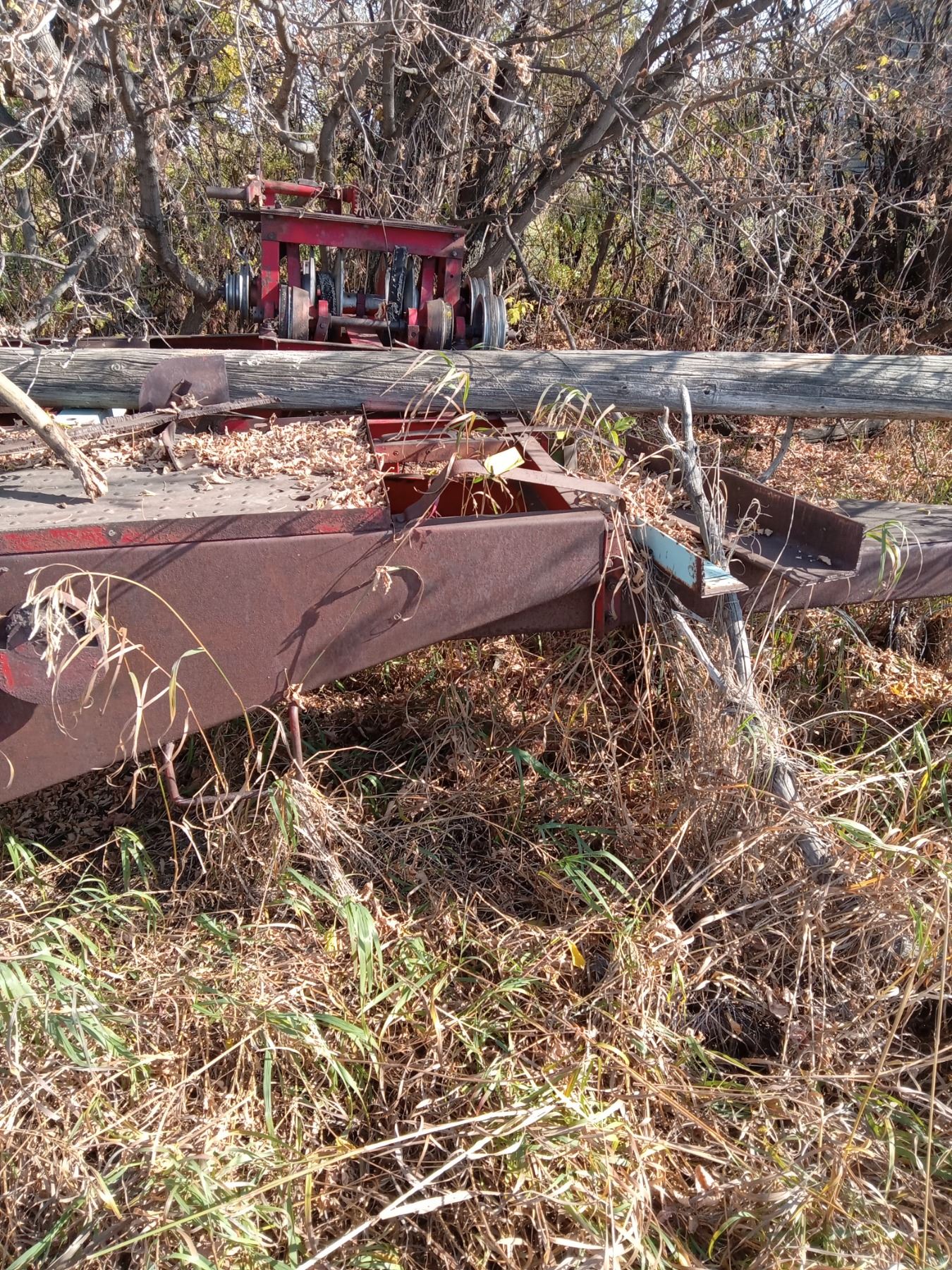 SELF PROPELED SWATHER - MISSING PARTS. AS WELL AS POWER LINE POLE