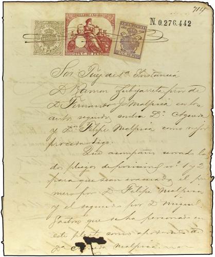 SELLOS FISCALES PARA RECIBOS Y CUENTAS 1871- 1887. Conjunto de 25 documentos con sellos de Recibos, la mayoria con un sólo sello. INTERESANTE CONJUNTO.