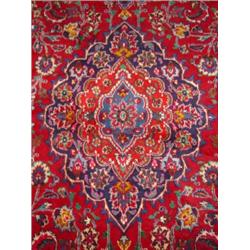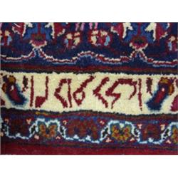 SEMI-ANTIQUE PERSIAN MASHAD RUG. Signed on border. 8.2" x 11"