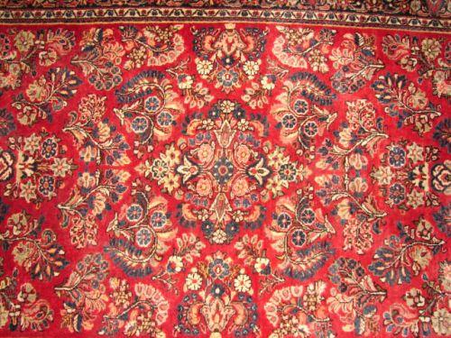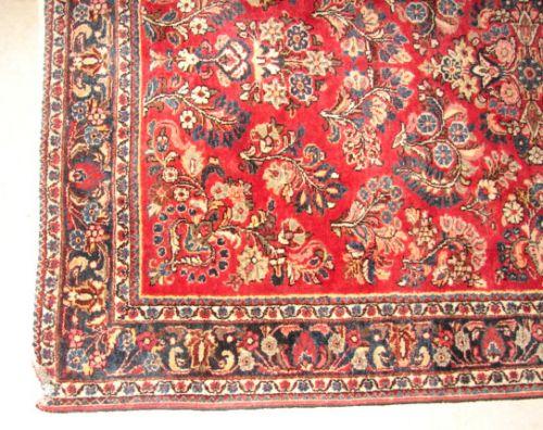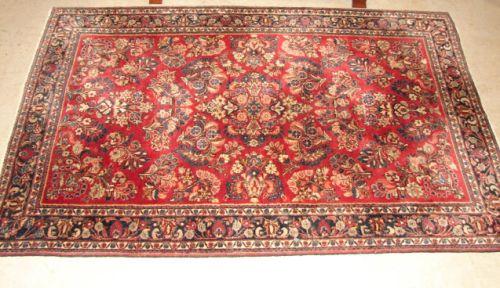 SEMI-ANTIQUE PERSIAN RUG. Has red, blue, tan, & brown colors. 76” x 49.5”