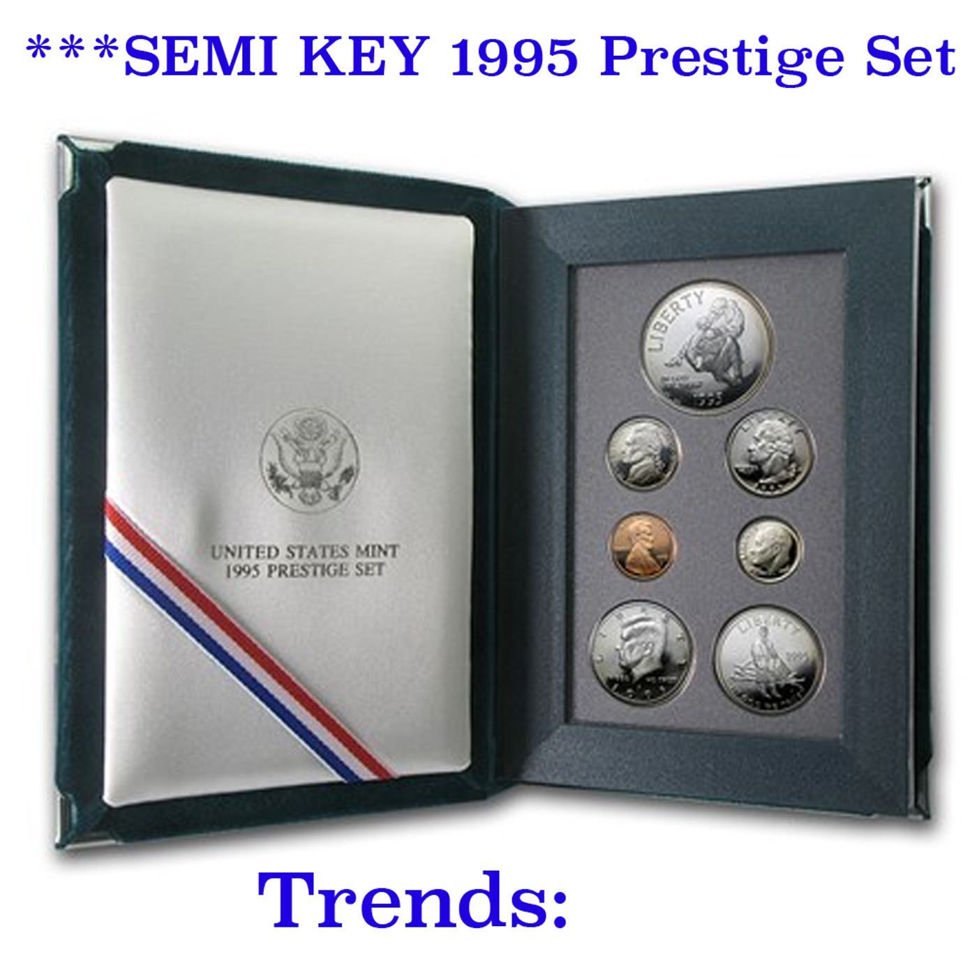 ***SEMI KEY 1995 United States Mint Prestige Proof Set Grades. Contains the 1995 Civil War Battlefields 90% Proof US Silver Dollar & the 1995 Civil War Battlefields Half Dollar plus the Traditional 5 piece 1995 Proof Set. SEMI KEY SET TO THE SERIES!!!! Hard to find!!! Includes Box and COA. About 1 OZ of Pure Silver