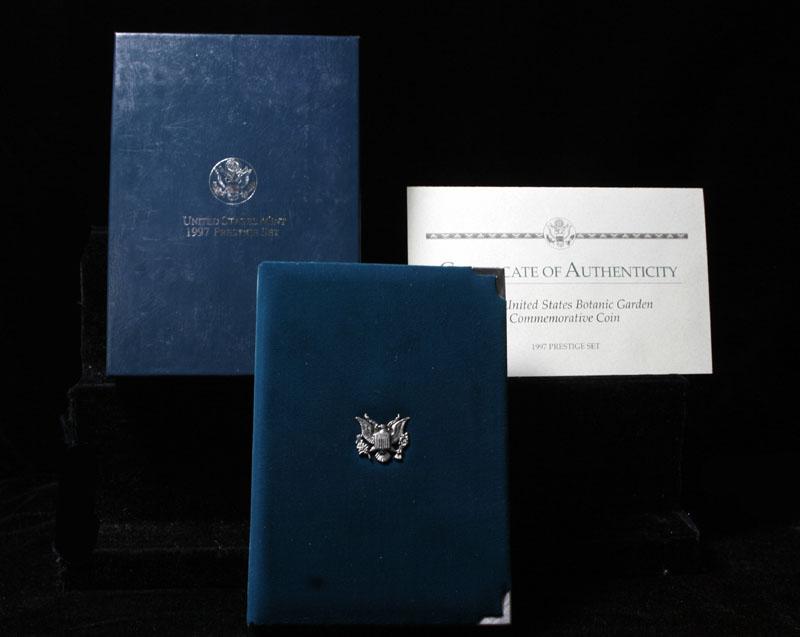 SEMI-KEY SET Contains the 1997 Botanic Gardens 90% silver US Silver Dollar plus the Traditional 5 pieces 1997 Proof Set. Semi-Key To the Series. Note* The silver Dollar alone has .7736 Oz. of pure silver and Silver is over $40/Ounce. SEMI KEY SET TO THE SERIES!!!! Hard to find!!! Includes Box and COA Estimated Value $150