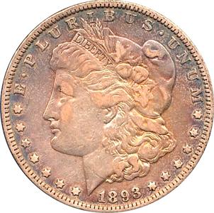 SEMI-KEY DATE 1893 MORGAN SILVER DOLLAR-COLOR XF
