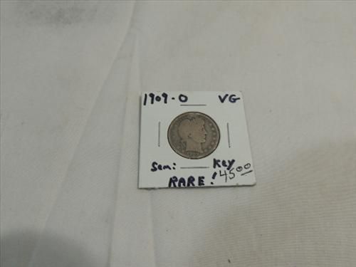 SEMI KEY US COIN 1909-O BARBER QUARTER - VG. AS SHOWN. VIEW PICTURE FOR DETAIL.