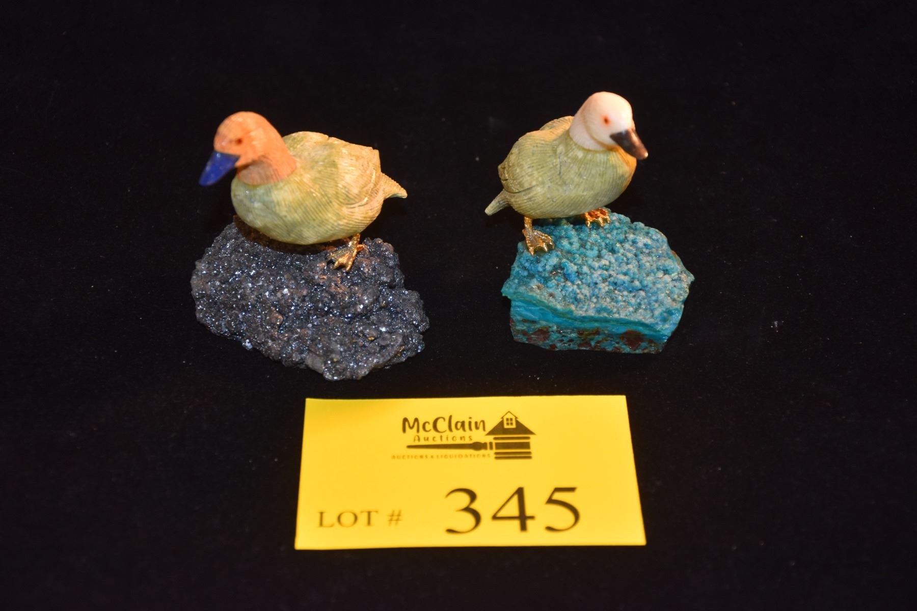 SEMI-PRECIOUS STONE GEESE SCULPTURES (2 PCS)