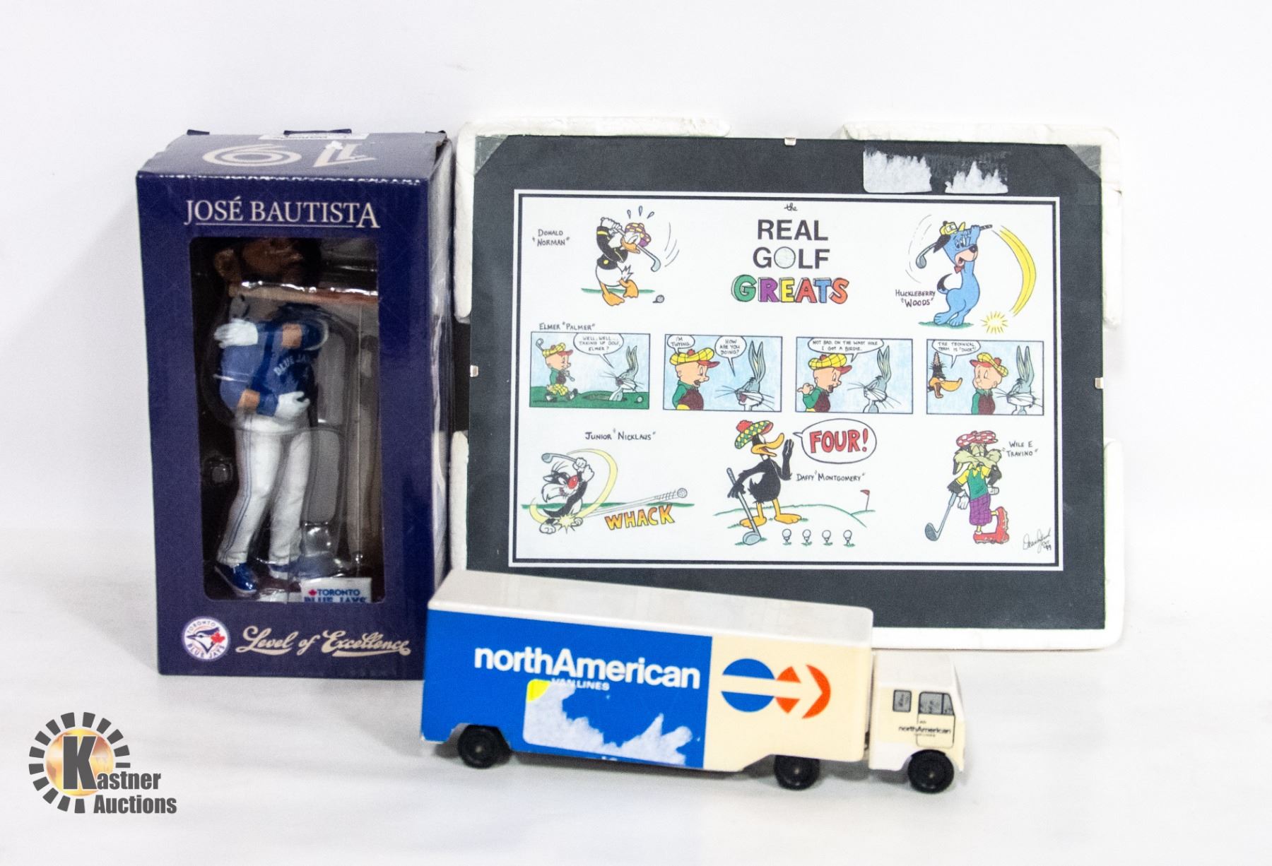 SEMI TRUCK TOY, BOBBLEHEAD + LOONEY TUNES PRINT