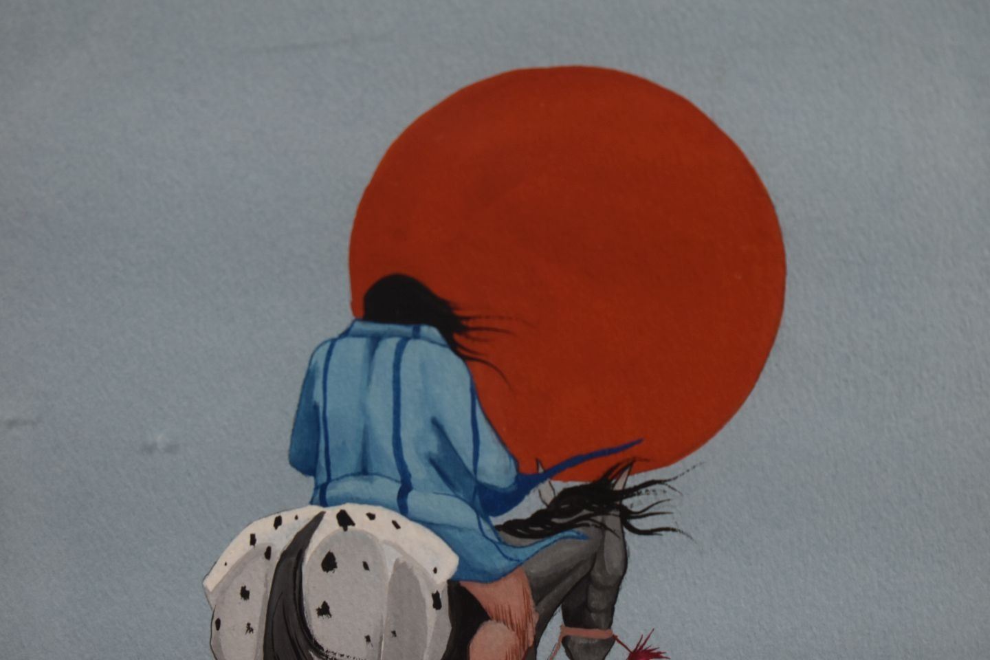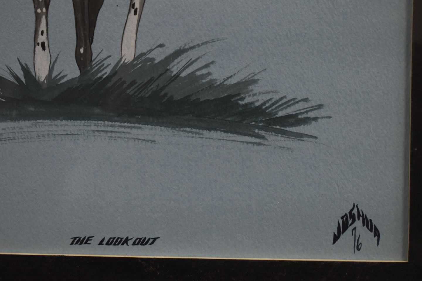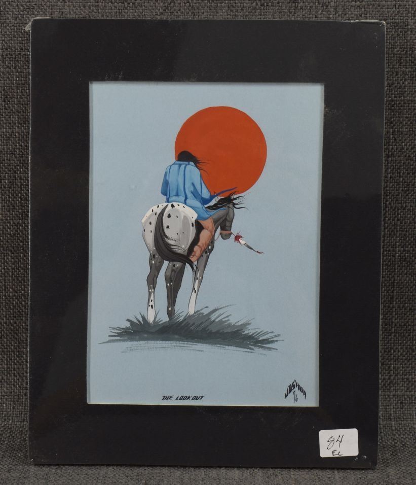 1976 Seminole Indian hand painted watercolor on paper signed Joshua 7.25" x 5.25" matted to 10" x 8"