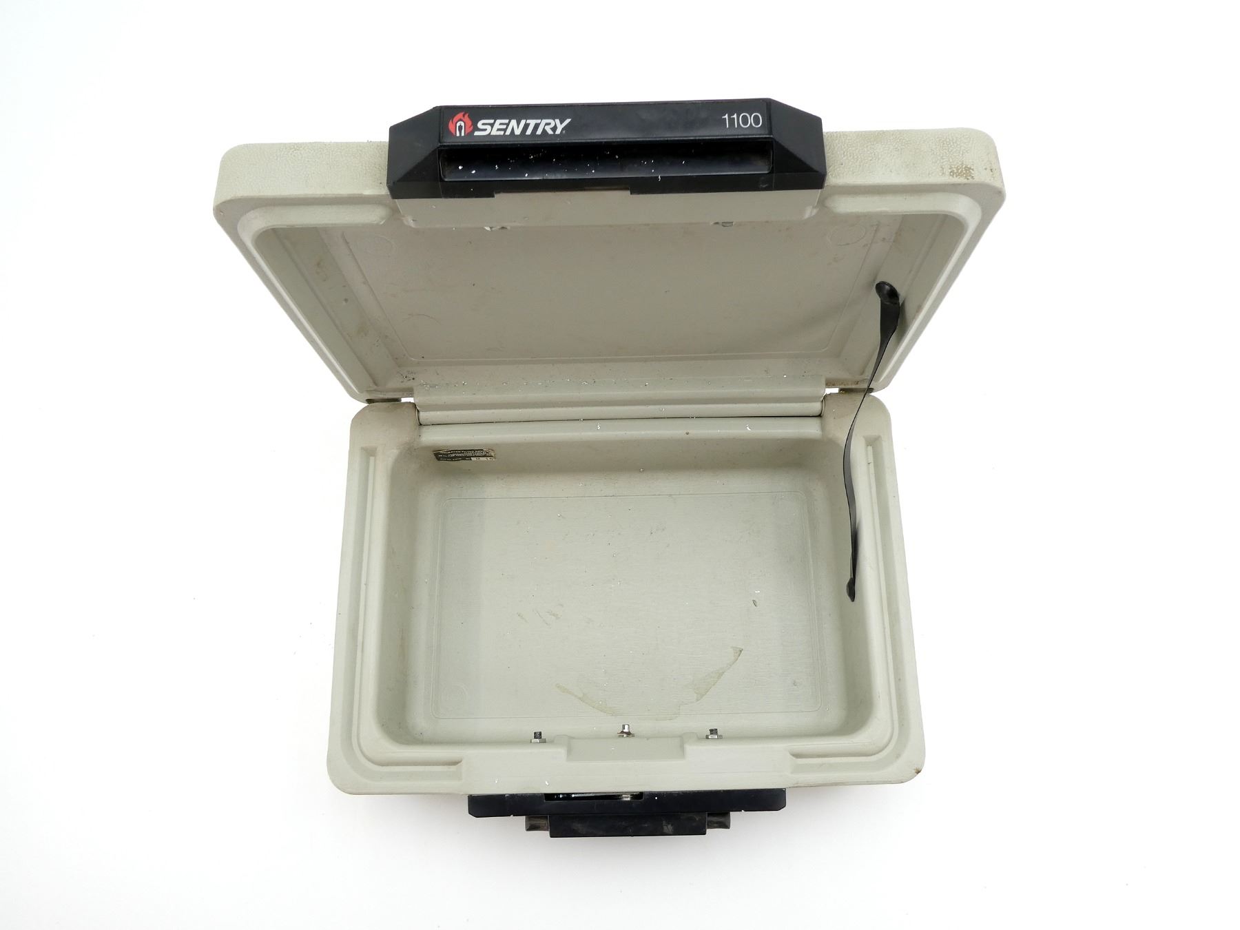 LOT INCLUDES; (1) SAFE, NO KEYS, LOCK HAS BEEN DRILLED OUT, APPROX. OAL14"X11"X6", SHOWS WEAR AND TEAR FROM USAGE, SEE PHOTOS.