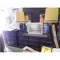 DRESSER (9 DRAWER) + DRESSER (4 DRAWER) + HEAD BOARD & 2 MIRRORS