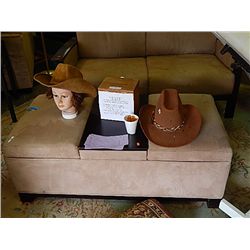 MICROFIBRE & WOOD ACCENTED OTTOMAN WITH STORAGE IN CENTER