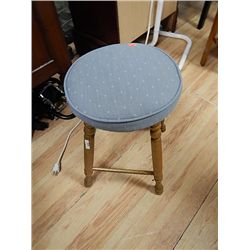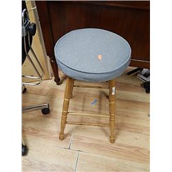 BLUE UPHOLSTERED & WOOD STOOL - SMALL