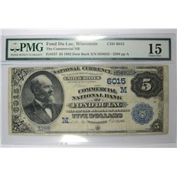 1882 $5 National Fond DU LAC WI #6015 PMG 15