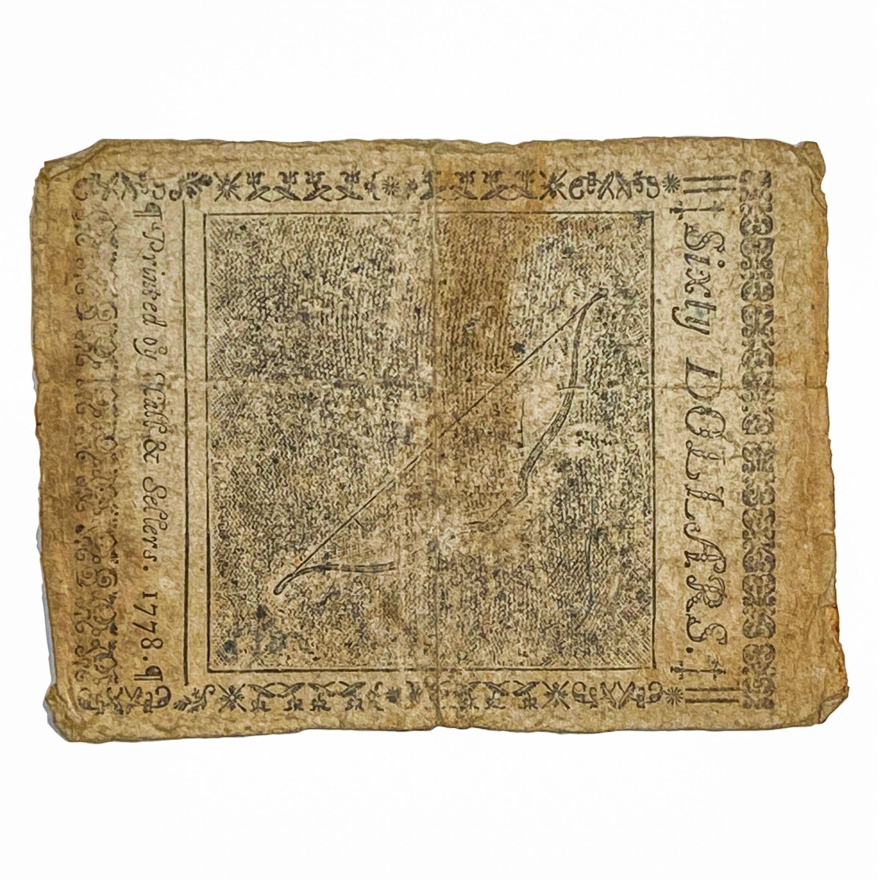 SEPTEMBER 26, 1778 $60 DOLLARS CONTINENTAL VF