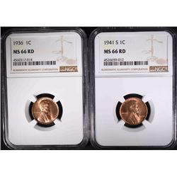 1936 & 1941-S LINCOLN CENTS NGC MS66 RD