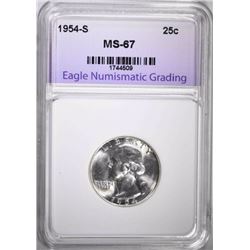 1954-S WASHINGTON QUARTER, ENG SUPERB GEM BU ESTIMATE $100 - $125.
