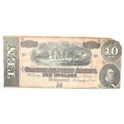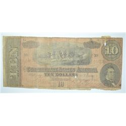 CONFEDERATE $10.00 NOTE 1864 FAIR-GOOD