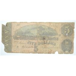 CONFEDERATE $5.00 NOTE 1864 FAIR-GOOD