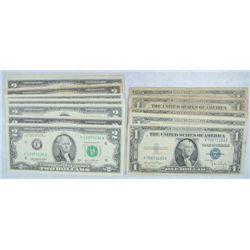 5- $1.00 SILVER CERTS GOOD, 4-1976 $2.00 BI-CEN UNC, 1-1953 $2.00, 5- GREEN SEAL