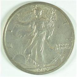 1916-D WALKING LIBERTY HALF DOLLAR, MS-64+ WHITE RARE!