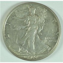 1918 WALKING LIBERTY HALF DOLLAR, MS-61 NICE WHITE COIN