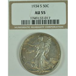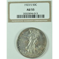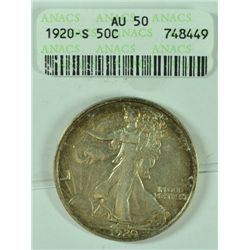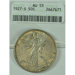 1917-S REVERSE WALKING LIBERTY HALF DOLLAR, ( ANACS AU-55 ) COIN WITH CERT.