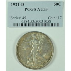 1919-D WALKING LIBERTY HALF DOLLAR, ( NGC AU-53 ) CERT. WITH COIN RARE!!