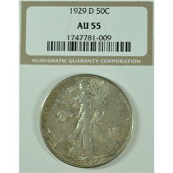 1917-D OBVERSE WALKING LIBERTY HALF DOLLAR, ( ANACS AU-55 ) CERT. WITH COIN