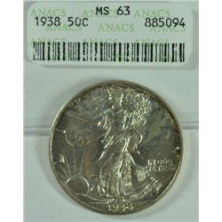 1917 WALKING LIBERTY HALF DOLLAR, ( ANACS MS-63 ) CERT. WITH COIN