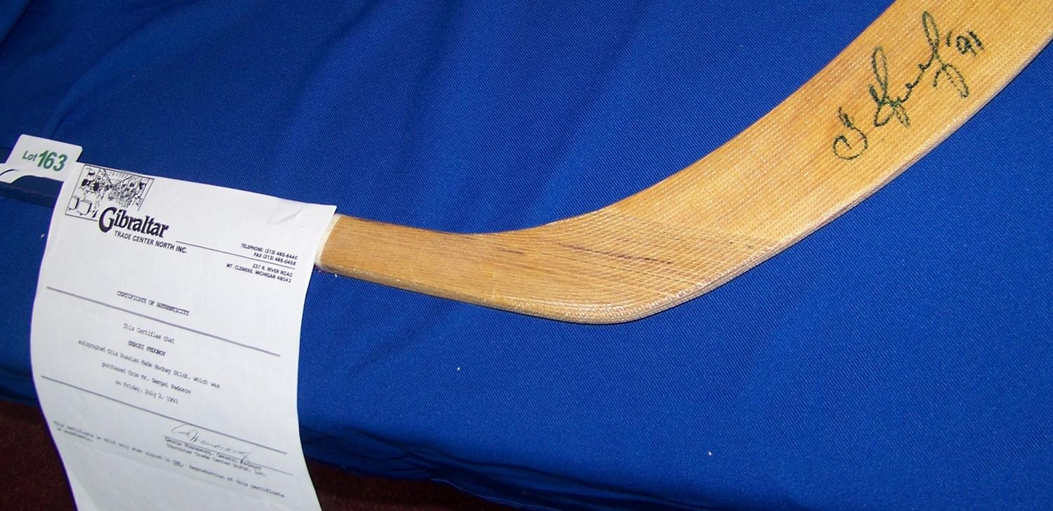 SERGEI FEDOROV HAND SIGNED AND DATED RUSSIA HOCKEY STICK W/ COA--STICK APPEARING TO BE GAME USED