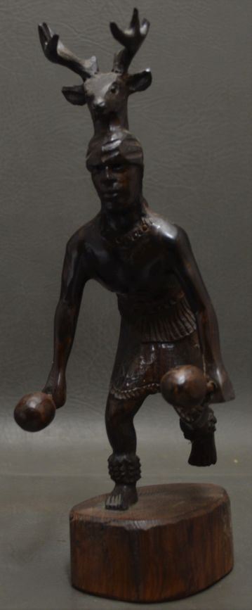 2006 Seri Indian hand carved iron wood depicting Yaqui Deer Dancer. 12'' tall