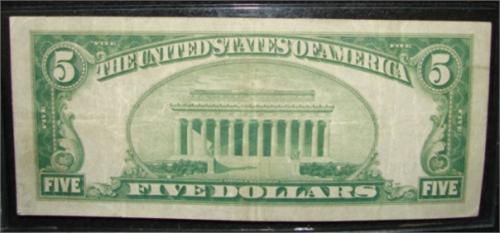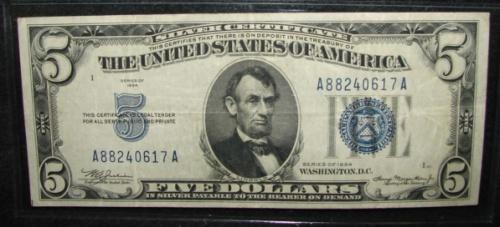 SERIES 1934 $5 U.S. SILVER CERTIFICATE.