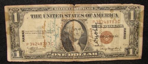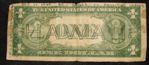 SERIES 1935-A $1 U.S. HAWAIIAN SILVER CERTIFICATE. Stamped Hawaii on front and back.