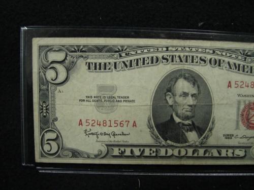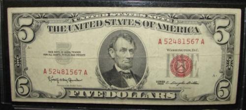 SERIES 1963 $5 U.S. NOTE. Red seal.