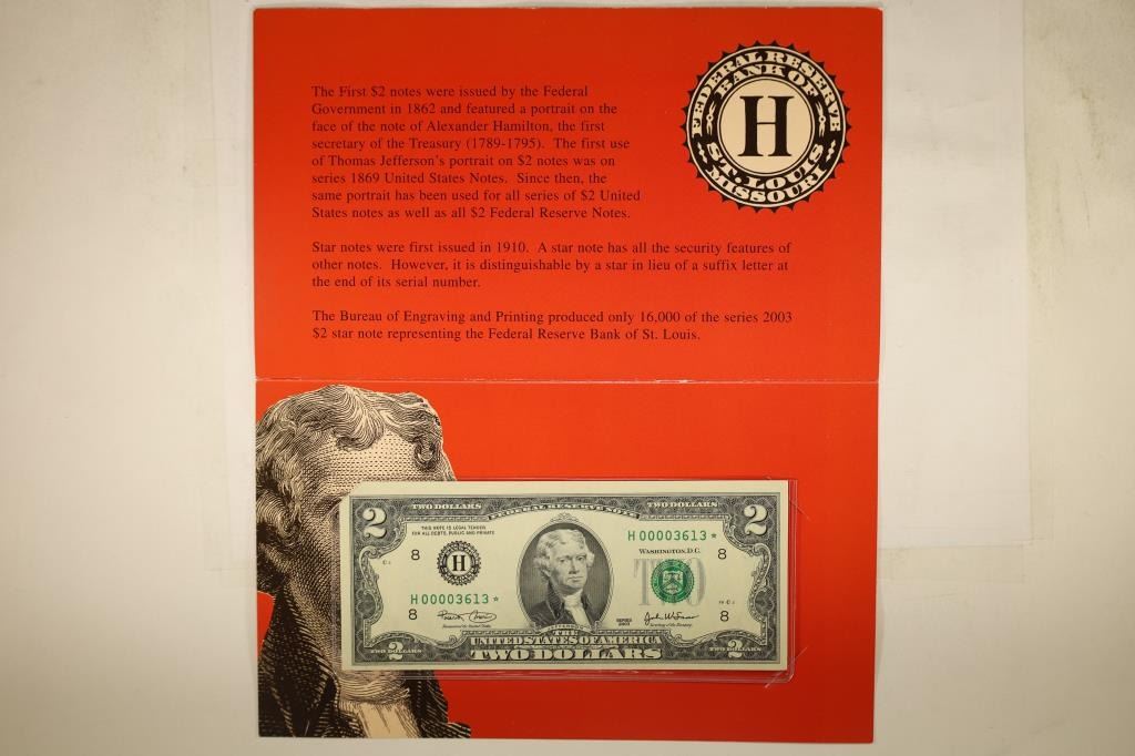 BANK OF ST. LOUIS, CRISP UNC WITH LOWER SERIAL NUMBER, ORIGINAL BEP PACKAGING