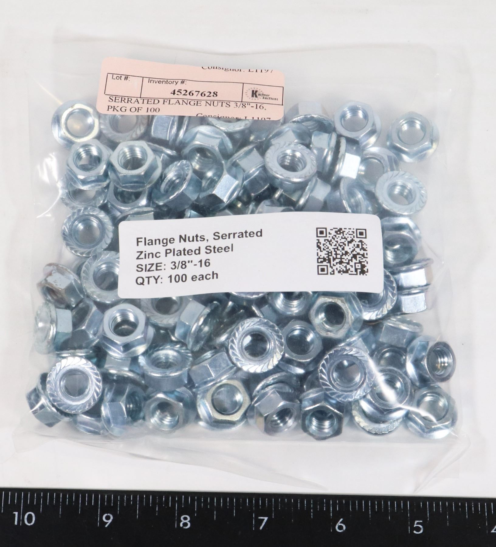 SERRATED FLANGE NUTS 3/8"-16, PKG OF 100