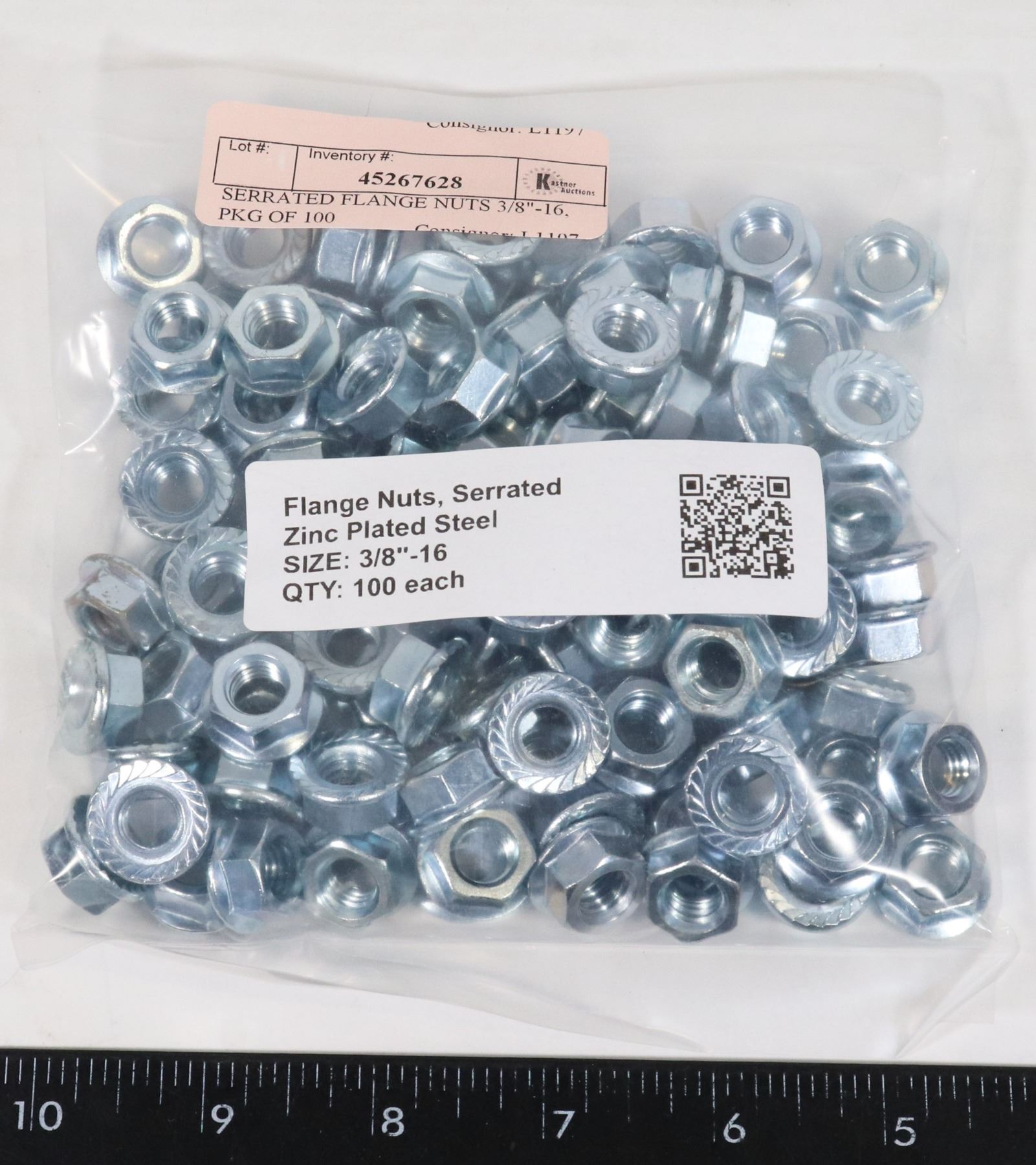 SERRATED FLANGE NUTS 3/8"-16, PKG OF 100
