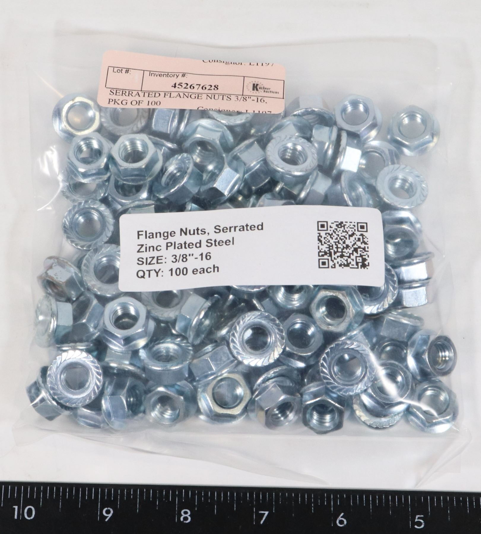 SERRATED FLANGE NUTS 3/8"-16, PKG OF 100