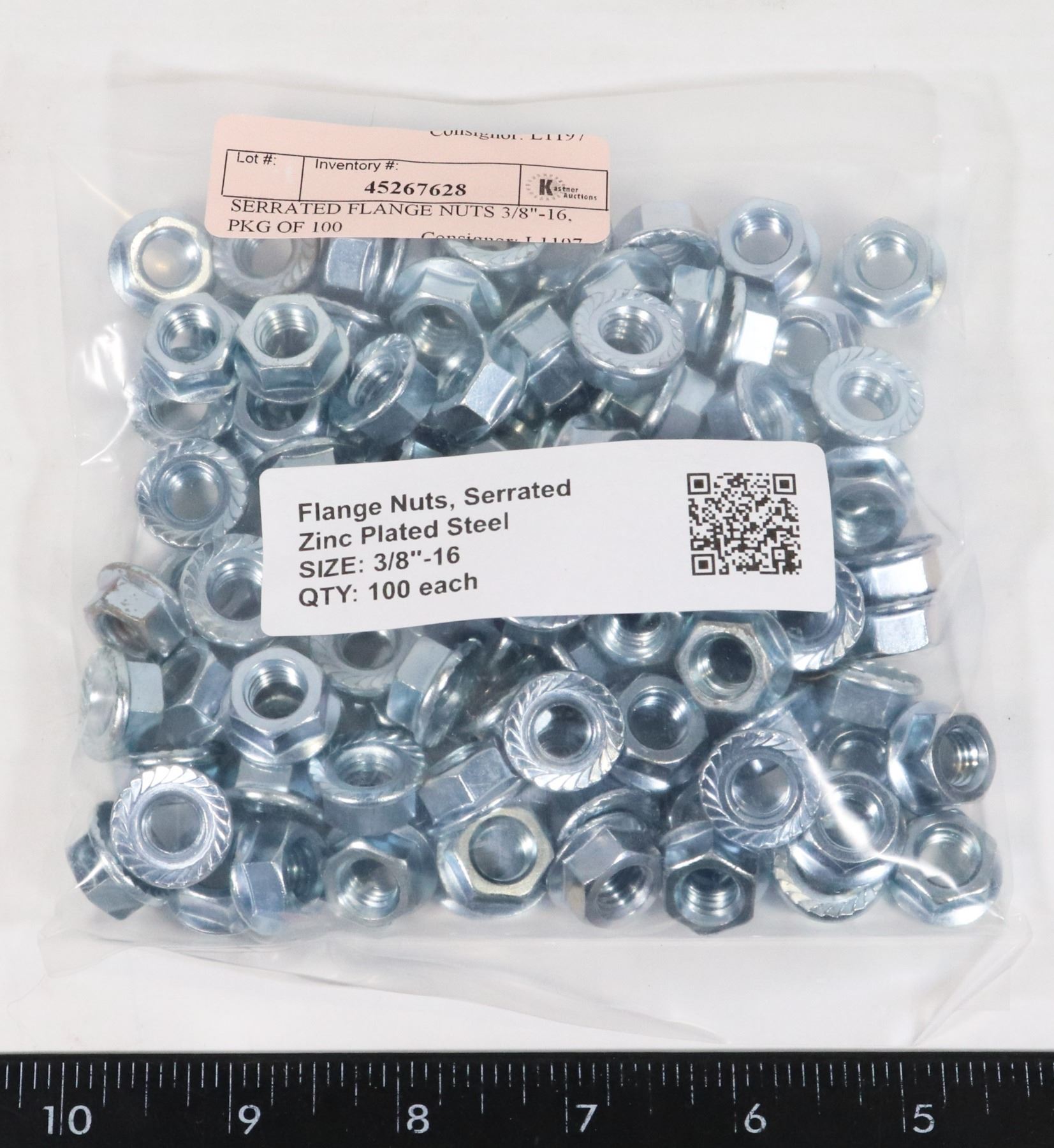 SERRATED FLANGE NUTS 3/8"-16, PKG OF 100