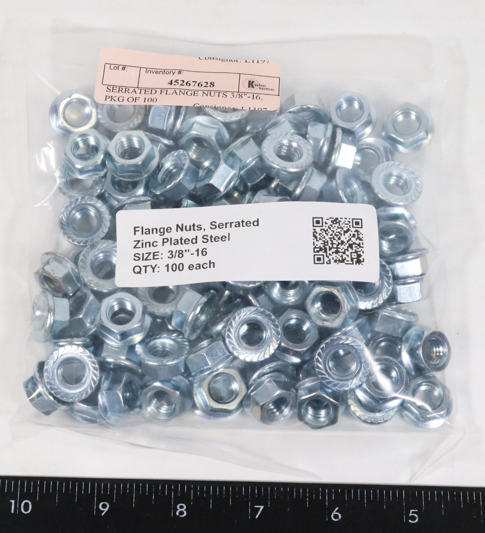 SERRATED FLANGE NUTS 3/8"-16, PKG OF 100