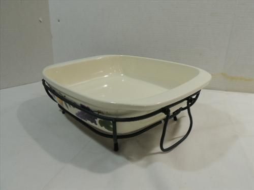 SERVING CASSAROLE BOWL & STAND, ORCHARD PATTERN. NEW NEVER USED. AS SHOWN. VIEW PICTURE FOR DETAIL.