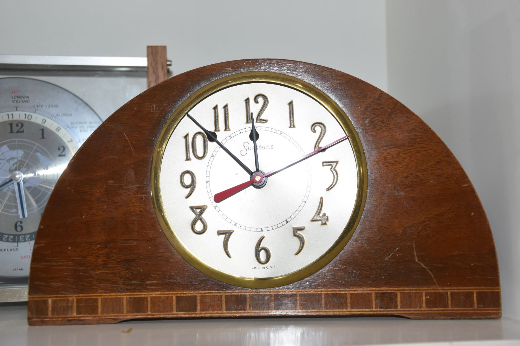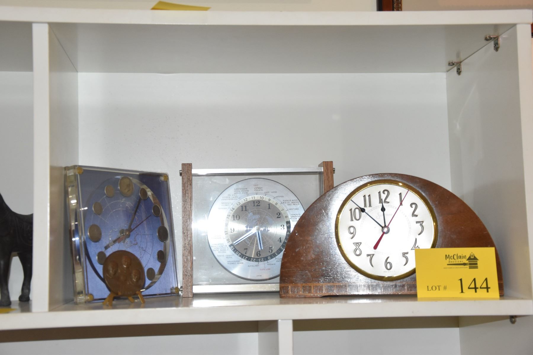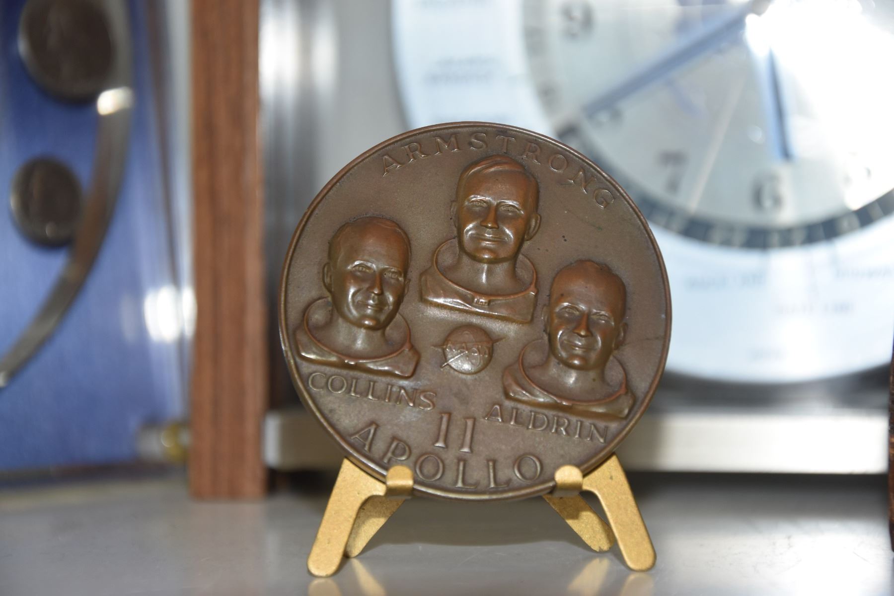 SESSIONS TABLE CLOCK, INTERNATIONAL CLOCK, NUMISMATIC CLOCK BY MARION-KAY & APOLLO MEDALLION (4 PCS)