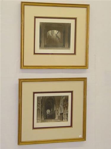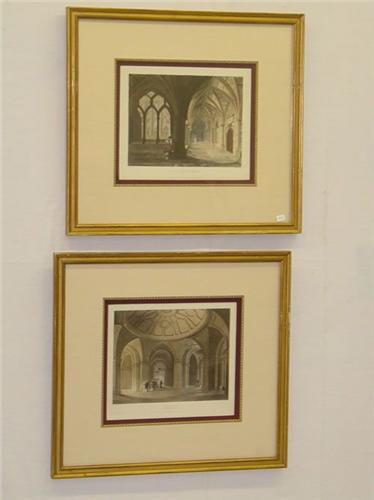 SET (4) ENGLISH COLORED LITHOGRAPHS BY RUDOLPH ACKERMANN OF EUROPEAN BUILDINGS (ARCHITECTURE)-NEWLY FRAMED & MATTED